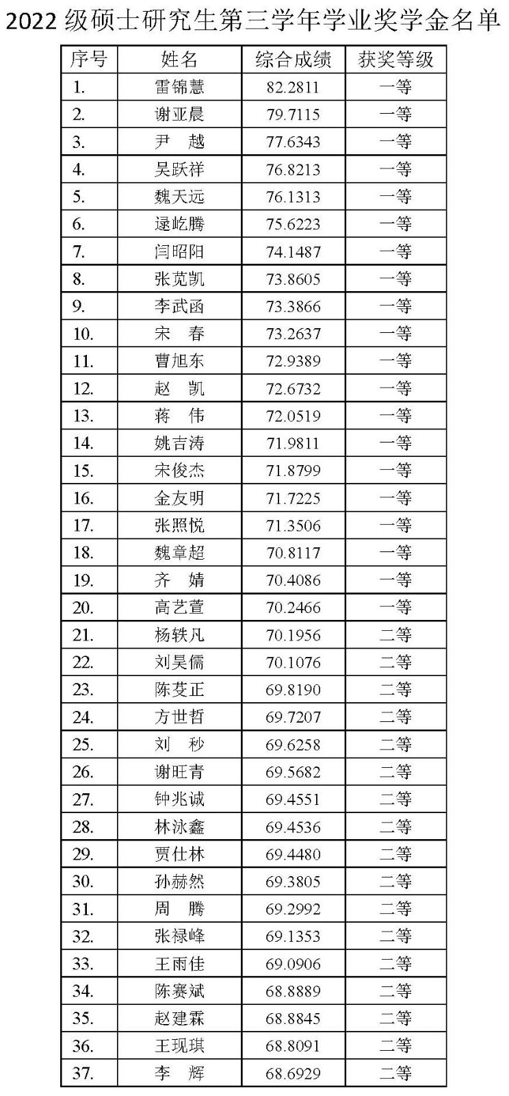 附件:2022級碩士研究生第三學年學業(yè)獎學金名單