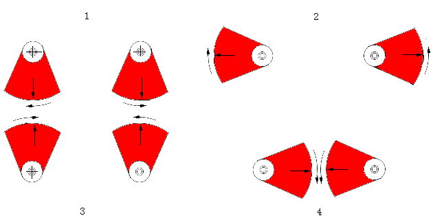 1.成為正;2.兩力抵消;3.兩力合成為負(fù);4兩力抵消。