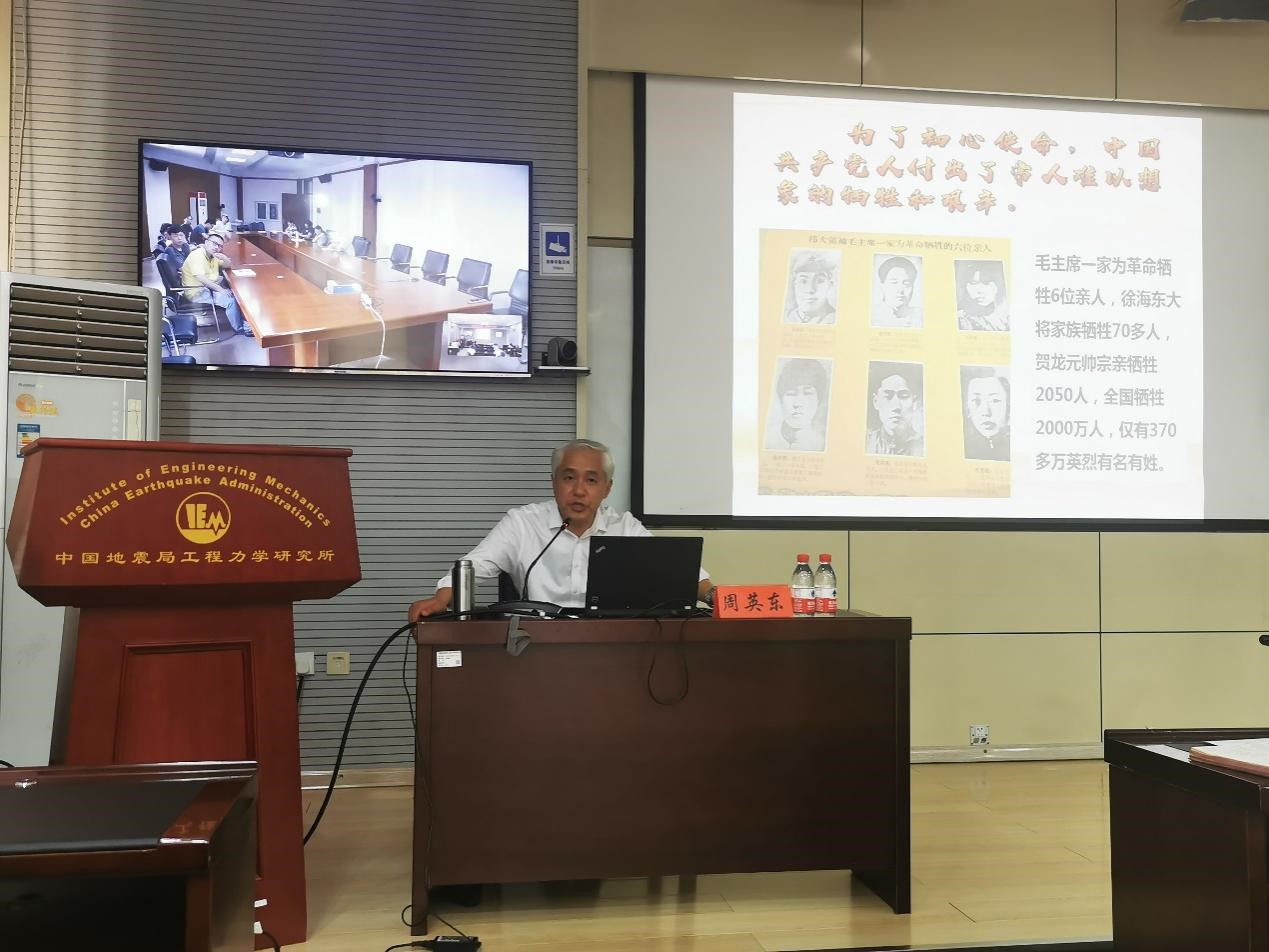周教授首先為大家詳細(xì)解讀了“七一”講話的精髓,把講話內(nèi)容分為四個部分講解——“莊嚴(yán)宣告全面建成小康社會振奮人心”“實現(xiàn)中華民族偉大復(fù)興的主題貫穿百年”“首次提及建黨精神”“九個‘必須’指引未來”。其中著重講解了建黨精神要從理論優(yōu)勢、政治優(yōu)勢、精神優(yōu)勢和道德優(yōu)勢四個方面理解,九個“必須”是中國共產(chǎn)黨領(lǐng)導(dǎo)力量、依靠力量、思想引領(lǐng)、事業(yè)保障、安全保證、干事原則和自身要求等方面的綜合體現(xiàn)。接下來周教授又從專業(yè)角度用大量感人的事例圍繞共產(chǎn)黨人堅守初心使命“從哪得”“為什么守”“怎么守”三個方面談了體會,重申了全體共產(chǎn)黨員要牢記初心使命,堅定理想信念,踐行黨的宗旨,永遠保持同人民群眾的血肉聯(lián)系,始終同人民風(fēng)雨同舟,為實現(xiàn)人民對美好生活的向往不懈努力!