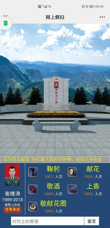 北京園區(qū)支部通過“中華英烈網(wǎng)”網(wǎng)上祭掃革命先烈活動,支部黨員紛紛留言,表示:沒有先烈的英勇獻身,就沒有我們今天的幸福生活!向英烈致敬!向你們學習!