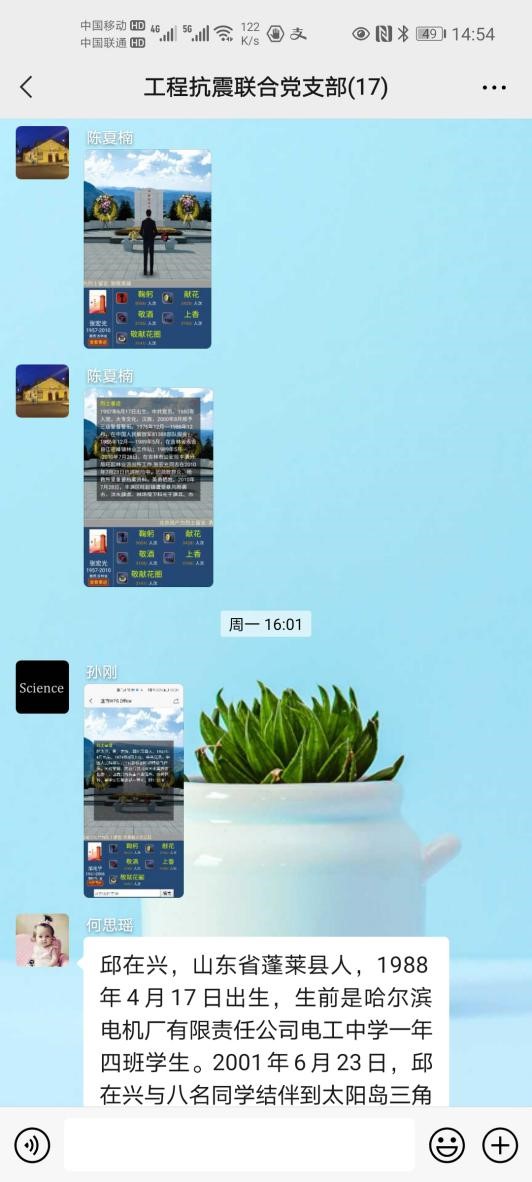 工程抗震與防災韌性團隊黨支部開展網(wǎng)上祭掃活動,全體黨員一同參與對先烈祭掃、學習英烈們的英雄事跡、交流個人感受,表達緬懷、敬意。