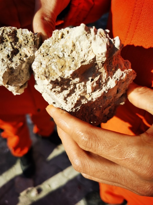 本次在安塔基亞市區(qū)搜救工作中,遇到一棟地震中完全倒塌的6層鋼筋混凝土公寓,形成層疊式廢墟。該建筑梁柱鋼筋還算充足,但是縱筋采用光圓鋼筋,連接處采用搭接連接,握裹力不足,不符合抗震設計要求。同時混凝土石子發(fā)黃、發(fā)脆,造成混凝土強度不高,容易發(fā)生脆性破壞。