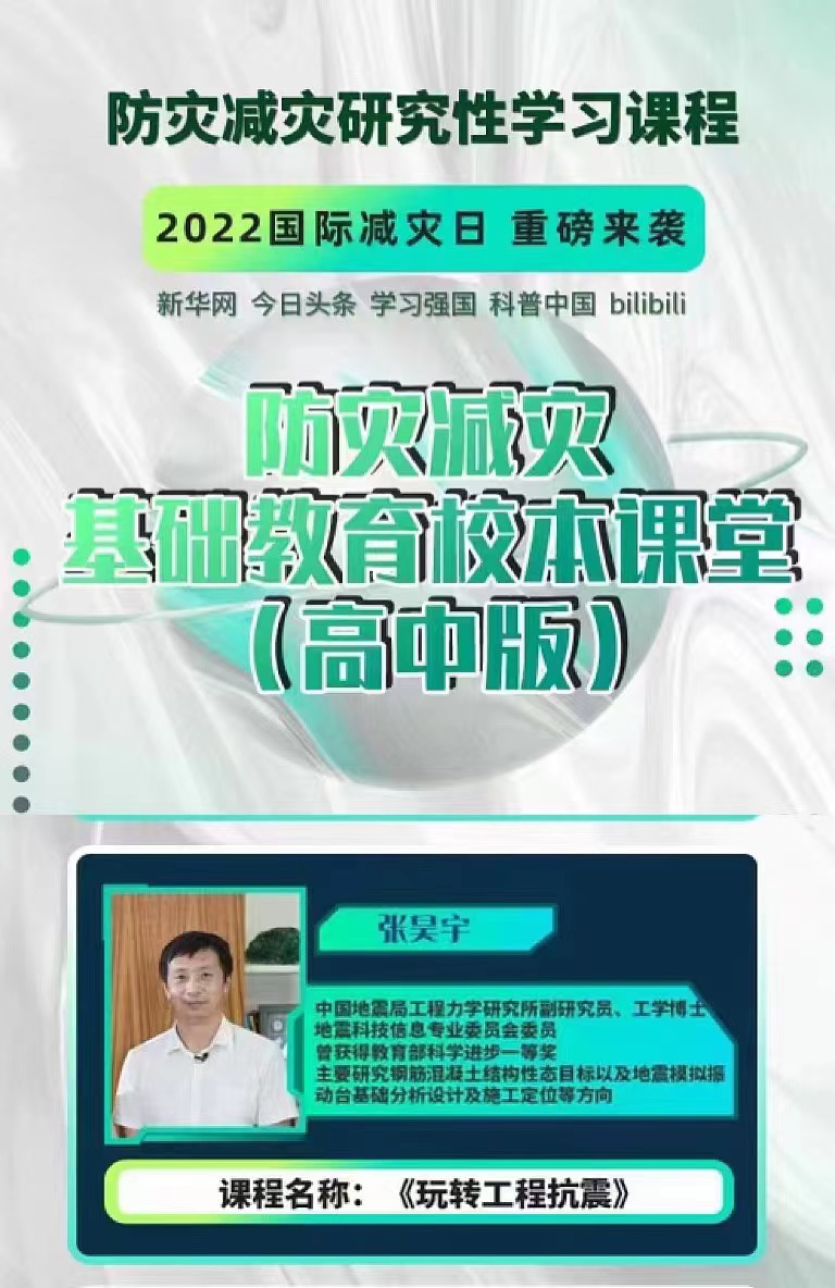 二是我所張昊宇副研究員受邀參加北京市地震局組織的“防震減災(zāi)研究性學(xué)習(xí)課程”錄制, 原創(chuàng)科普視頻課程《玩轉(zhuǎn)工程抗震》在嗶哩嗶哩、新華網(wǎng)、今日頭條等平臺播出。