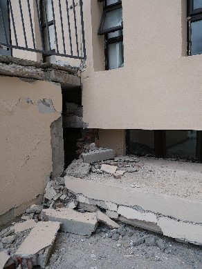 圖1 某學(xué)校隔震結(jié)構(gòu)(隔震溝發(fā)生碰撞)