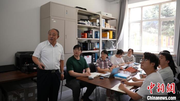 孫柏濤(左一)和學(xué)生討論課題。應(yīng)急管理部供圖
