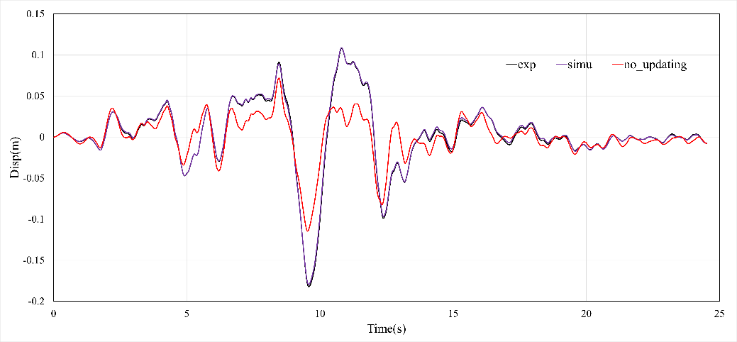 本次試驗基于“華龍一號”核島抗震I類廠房的隔震設(shè)計實踐,選取隔震層中一個角部橡膠隔震支座作為試驗子結(jié)構(gòu),建立核島廠房隔震上部結(jié)構(gòu)的整體化數(shù)值子結(jié)構(gòu)模型,采用三向混合試驗技術(shù),其中水平雙向為位移控制加載,豎向為力控制加載,將大噸位、高速度隔震空間加載檢測平臺獲得的試驗子結(jié)構(gòu)的結(jié)構(gòu)響應(yīng),作為輸入反饋給數(shù)值子結(jié)構(gòu),將數(shù)值子結(jié)構(gòu)計算得到的反力施加給試驗子結(jié)構(gòu),通過試驗子結(jié)構(gòu)與數(shù)值子結(jié)構(gòu)的交互,不斷更新、修正數(shù)值模型,較為精確模擬了核島廠房隔震結(jié)構(gòu)在地震作用下的全局響應(yīng),為大體量核島廠房隔震結(jié)構(gòu)設(shè)計驗證提供了重要支撐。