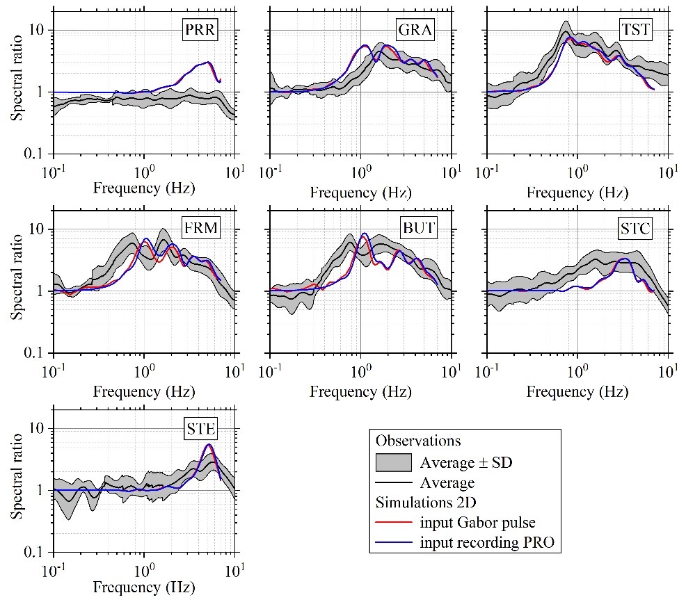 圖2 Mygdonian盆地觀測(cè)記錄和模擬結(jié)果的傅里葉譜比對(duì)比
