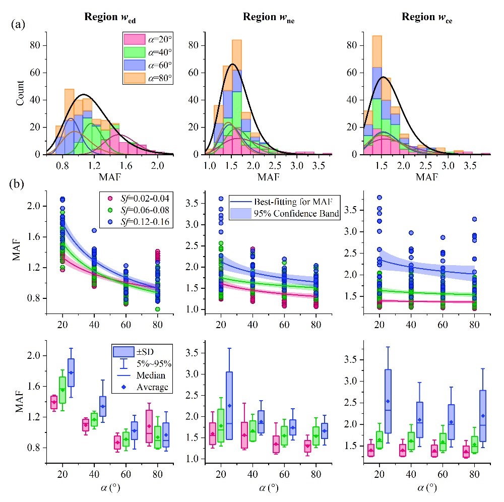 圖3 河谷邊緣傾角α對(duì)不同區(qū)域的放大系數(shù)MAF的影響
