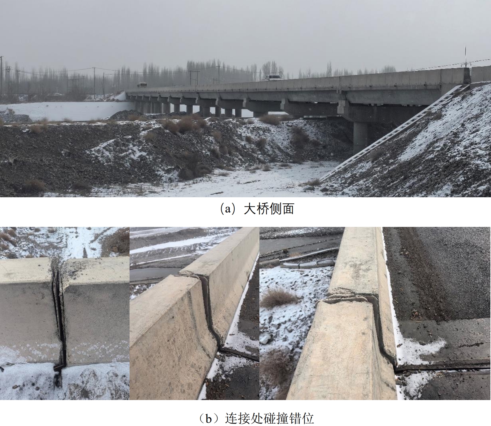科考隊(duì)還考察了位于Ⅷ度(8度)區(qū)的亞曼蘇大橋。亞曼蘇大橋在震后交通中斷,經(jīng)鑒定安全后現(xiàn)已通車。大橋?yàn)檫B續(xù)梁橋,地震造成近西北岸的橋梁連接處出現(xiàn)裂縫,水平位錯(cuò)約3cm。