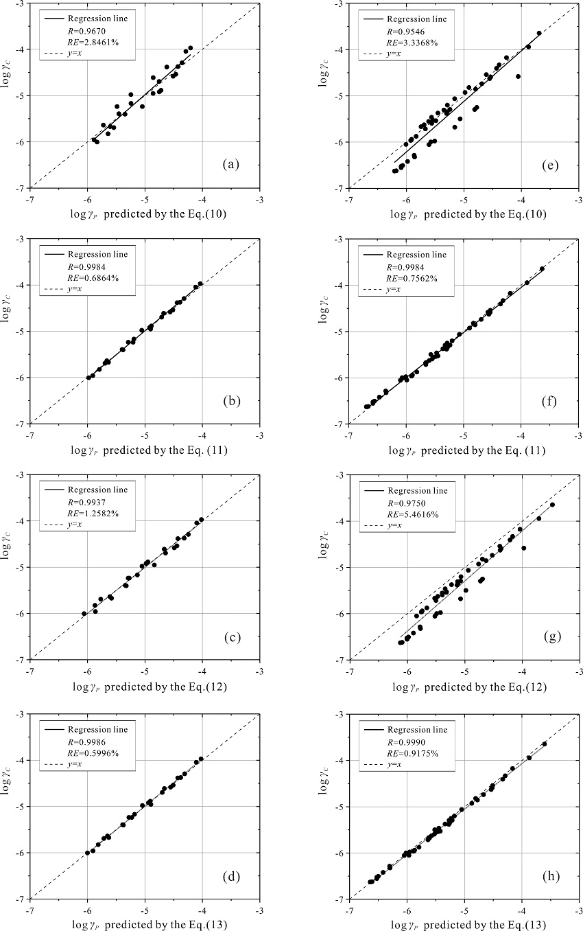 本研究利用美國6個(gè)巖土臺陣在43次地震中記錄的199組地震動數(shù)據(jù)建立的剪切應(yīng)變剖面,研究了在不同地震荷載作用下,這些巖土臺陣中剪切應(yīng)變剖面的特征;基于回歸分析得到了用于高精度評估II、III類(或D、E類)場地原位剪切應(yīng)變剖面的模型;研究了剪切應(yīng)變剖面中土體動力特性分別隨著剪切應(yīng)變、PGA和/或PGV增加的變化規(guī)律。結(jié)果表明: